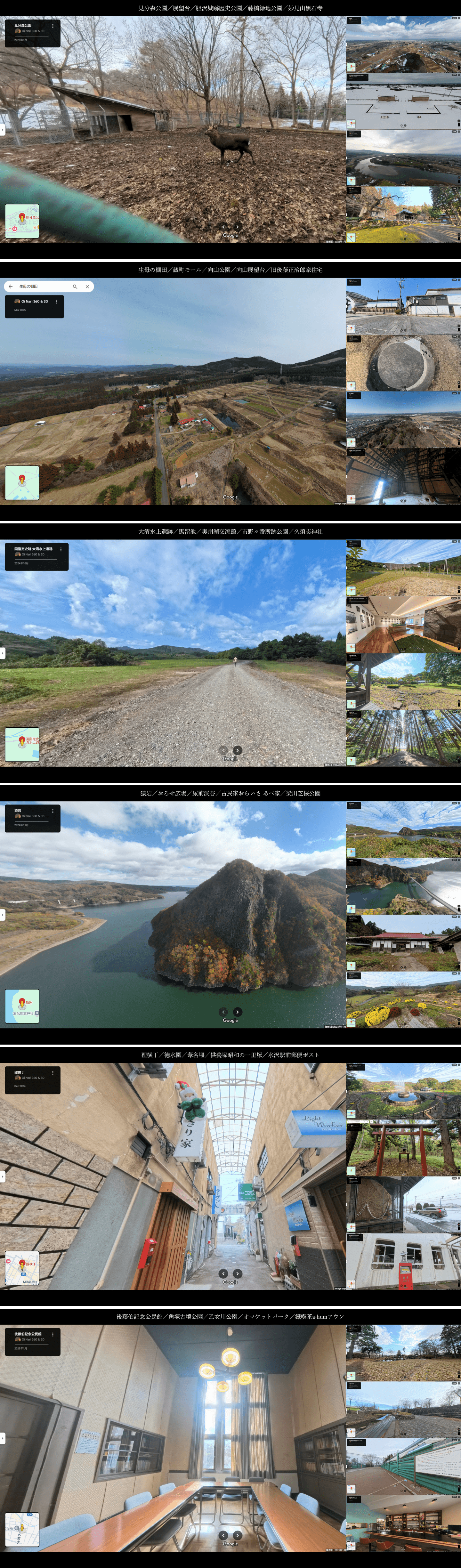岩手県奥州市にて撮影した数々の360°写真は、以下URLで参照可能です。