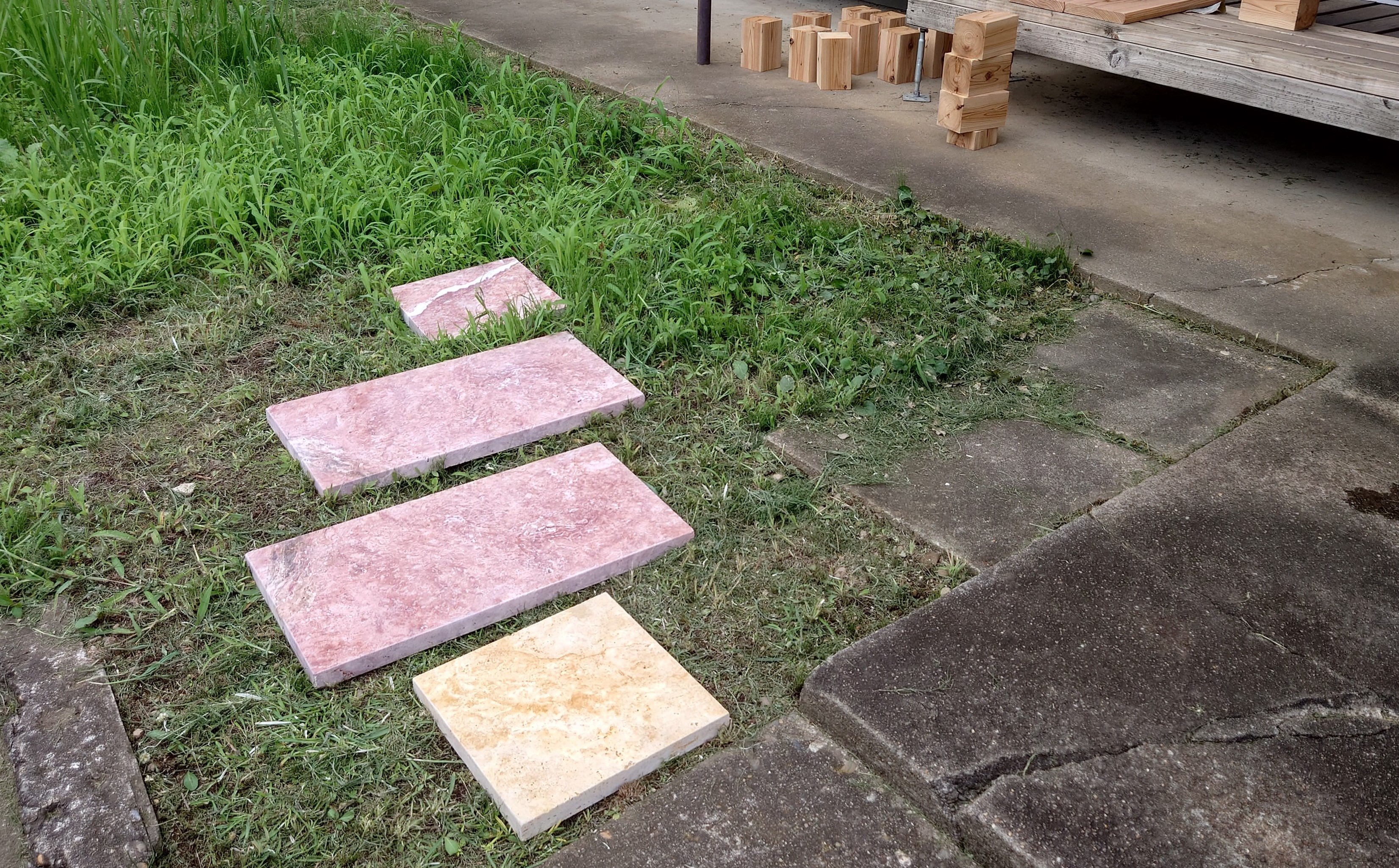 まだ、お庭のアプローチの敷石設置は途中ですが、